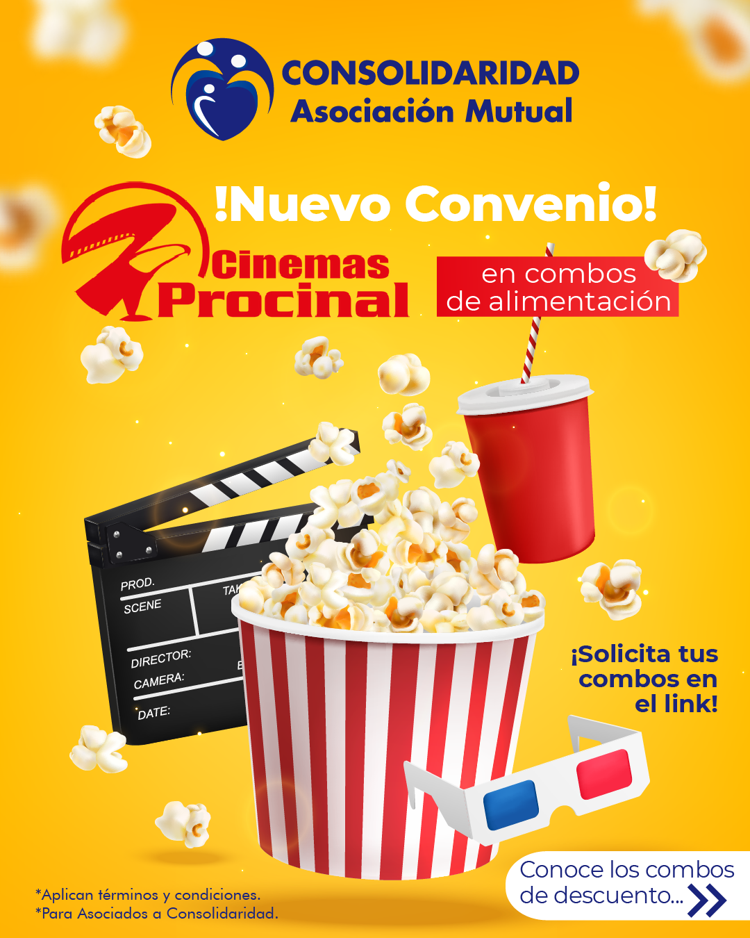 Un BENEFICIO más que Consolidaridad tiene para nuestros Asociados, en donde podrán tener descuentos en combos de comida para cine.
