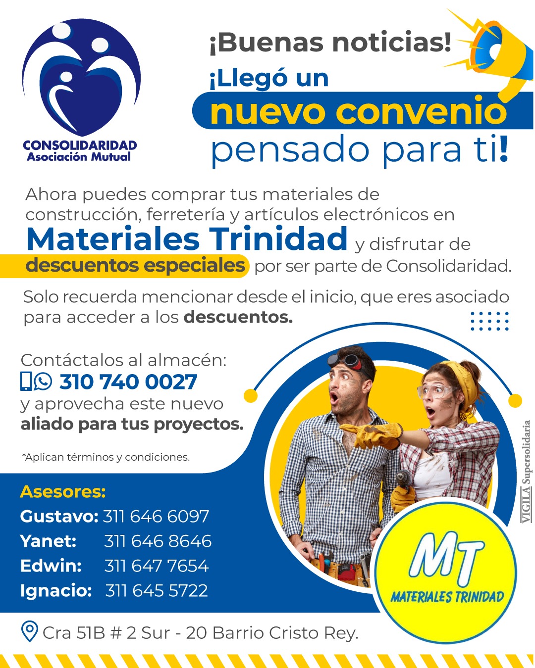 Ahora puedes comprar tus materiales de construcción, ferretería y artículos electrónicos en Materiales Trinidad y disfrutar de descuentos especiales por ser parte de Consolidaridad.
